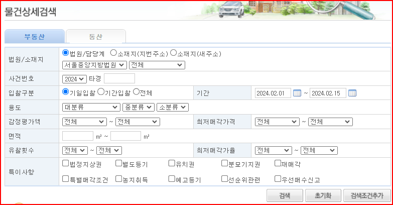 4. 사건 번호를 알고 있는 물건검색