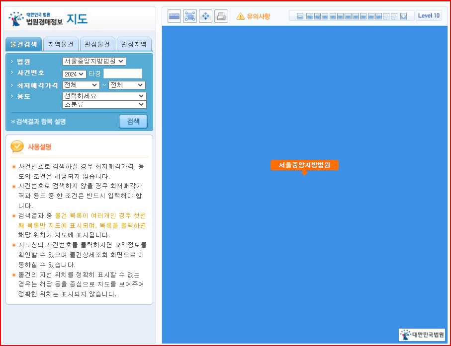 대법원 경매사이트에는 지도 검색이라는 유용한 기능이 있는데요