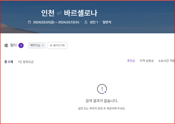해당 날짜에는 항공권이 없다고 나옵니다.