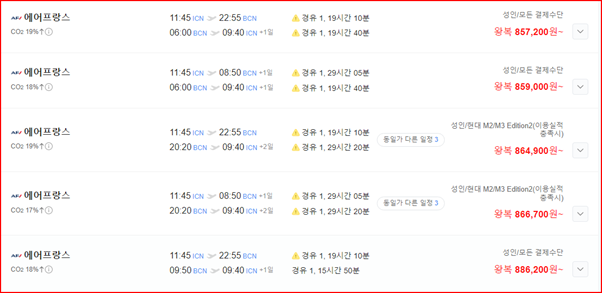 일단 바르셀로나에 있는 친구를 만나러 가서 아직까지 특별한 일정은 없습니다. 제가 원래 여행 갈때는 계획을 전혀 짜지 않습니다. 바르셀로나 in, 바르셀로나 out 조건으로 857,600원에 결제 했습니다.