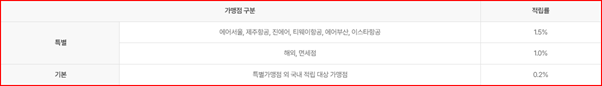 - UniMile 적립 : 국내외 적립 가맹점에서 UniMile 02%~1.5% 적립