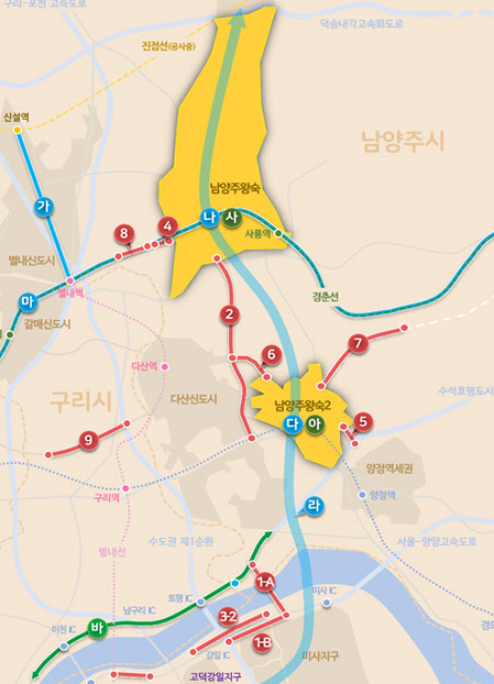 정말 다양한 위치가 예상되어 각종 소문과 주장이 나왔던 다산신도시 지금지구의 9호선 역사 위치 입니다.