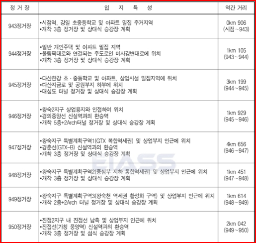 위 자료는 강동하남남양주선 광역철도 기본계획 전략환경영향평가서 초안에 나온 자료 입니다.