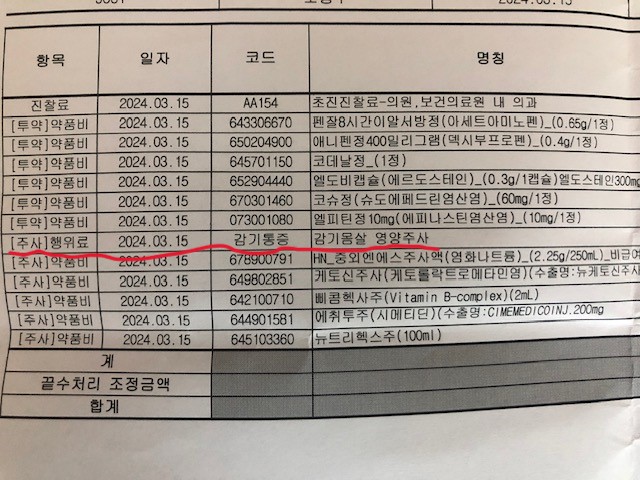 혹시나 해서 수액을 맞기 전에 보상 여부를 확인 해 보니 무조건 되는 건 아니었습니다. 하지만 그 기준이 무엇인지 정확히 알 수는 없었죠. 수액치료가 무조건 보상이 되거나 무조건 보상이 안된다고 생각하시면 안 됩니다. 아무튼 저 같은 경우 너무 아파서 수액을 맞아야 하는 상황 이었습니다. 진단시 실손보험 청구 할 예정이니 보험되는 걸로 놔 달다고 했더니 자기도 정확히는 모르겠지만 가장 많이 쓰는 것, 그리고 진단 명 때문에 문제 없을 것이라고 했습니다.