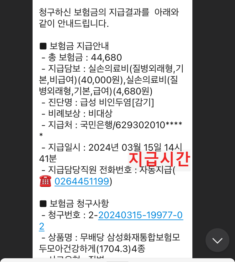 병원에서 수액을 맞고 돌아온 후 삼성화재 앱에서 12:33 PM 에 청구 서류를 제출 했습니다.