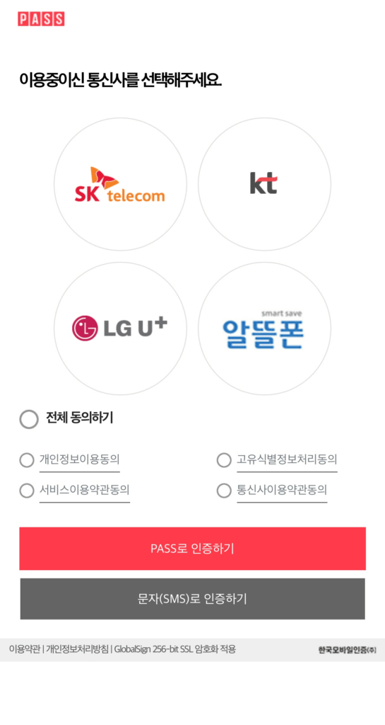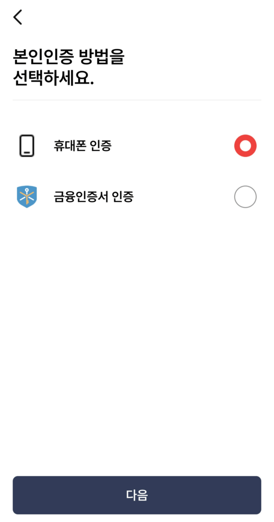 본인인증 방법은 휴대폰 인증과 금융인증서 인증을 선택 할 수 있는데,