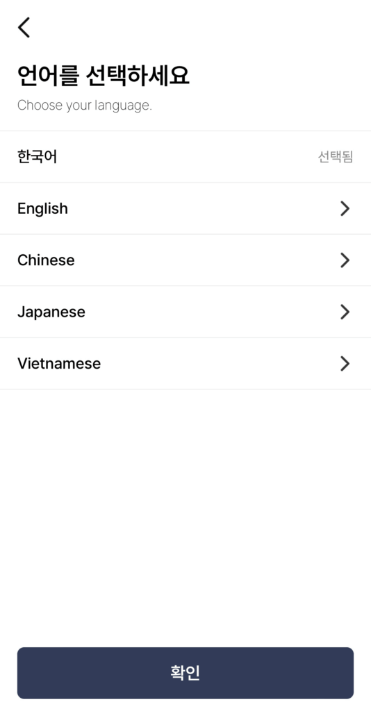 개인 및 기관 선택 화면에서 개인을 선택 후 언어는 한국어 그대로 선택하면 기본 설정 끝