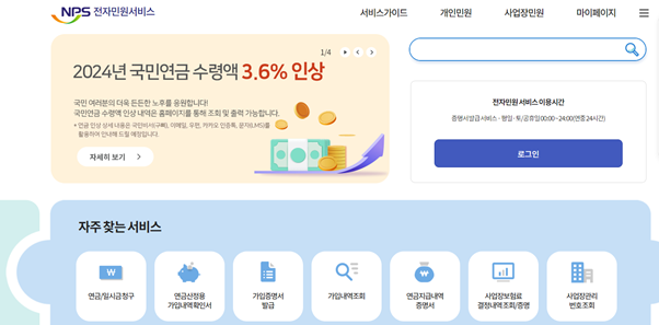 위 홈페이지 로그인 후 [연금/일시금청구] 메뉴 클릭하기.