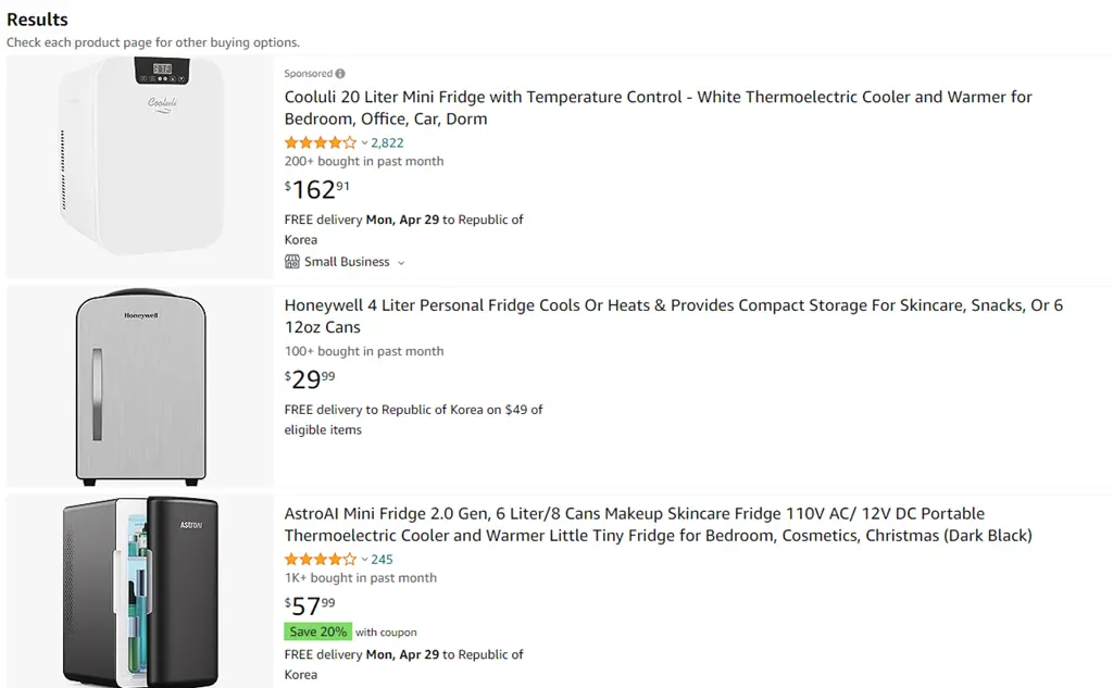 "FREE Shipping to Republic of Korea” 또는 “Your order qualifies for FREE Shipping"이라는 문구가 있는 제품만 해당
