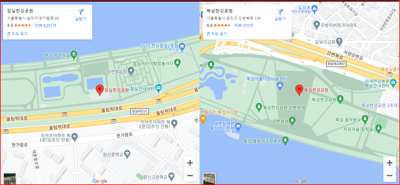 - 잠실한강공원 : 서울 송파구 한가람로 65