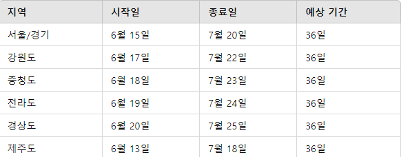 1.2024 장마철 기간